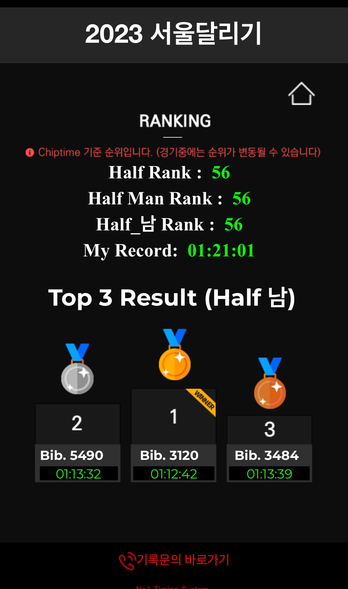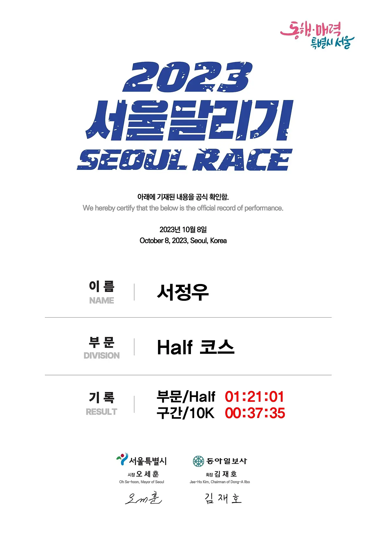 서울레이스 하프마라톤 1:21:01