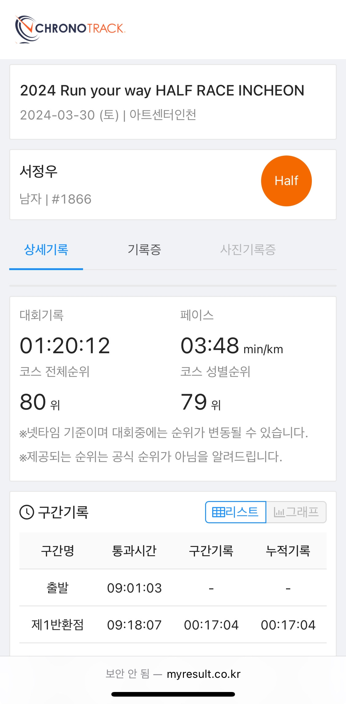 하프 마라톤 개인기록보다는 1분 이상 늦어진 기록이지만 다행히 작년 10월 서울레이스 하프 때보다는 1분 정도 앞당겼다. 이번 뉴발란스 대회에 참가하며 혹시라도 작년 서울레이스 하프 기록인 1시간 21분보다 안 좋을까 내심 걱정되었는데, 조금은 가벼워진 몸으로 조금은 가벼워진 기분으로 잘 마무리하였다. 보스턴까지 남은 기간 2주 정도로 역대 최저 몸무게를 달성하기 위해서는 5kg 감량이 필요해서 현실적으로는 체중 목표 달성은 어렵겠지만 그래도 최선을 다해 체중 관리를 하며 첫 해외 메이저 마라톤을 준비할 계획이다. 시차 적응이나 많은 참가인원으로 인한 복잡한 대회 코스 등 변수가 있지만 최선을 다해 다시 풀코스 2시간 40분대 기록을 얻고 싶다