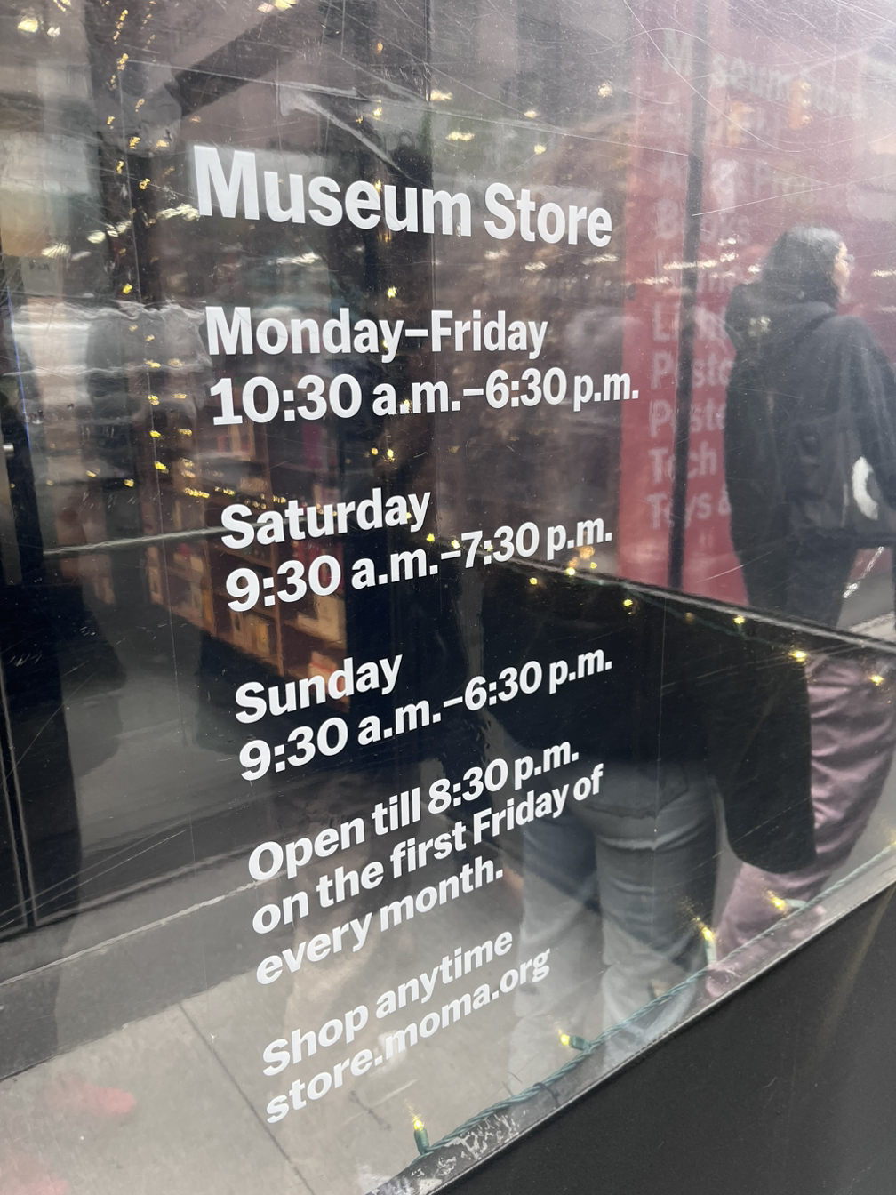 뉴욕을 계속 다시 방문하고 싶게 만드는 이유가 핫플레이스 장소나 경치 때문만은 아니다. 미술관/박물관과 공연이 진짜 매력이라고 개인적으로 생각하는데, 짧은 일정 때문에 나의 경우는 이번에 현대미술관 MoMA만 방문하였다. 한층 당 하루씩 봐도 부족할 정도로 엄청난 곳이었다. 짧은 일정과 시간으로 일부는 훑어볼 수밖에 없어 아쉬웠다. 외부 음식을 가지고 들어갈 수 없으니 만약 다음에 가족과 함께 뉴욕 마라톤 등으로 다시 뉴욕을 찾게 된다면, 새벽 조깅 > 아침 식사 > 오전 MoMA > 점심 식사 > 오후 메트로폴리탄 미술관 > 저녁 식사 > 브로드웨이/카네기홀 공연 관람 이런 일정으로 3~4일 정도 보내는 것이 정말 좋겠다는 상상을 하였다. 디자인을 전공한 아내 또한 뉴욕의 미술관을 좋아한다. 다음에 함께 오면 아내도 그리고 아이도 좋아할 것 같다