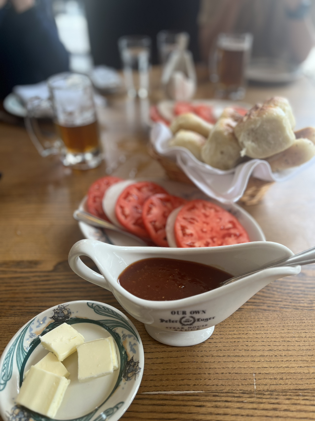 유일하게 기억에 남을 정도로 인상 깊어 나중에 뉴욕을 다시 찾을 때에도 재방문하고 싶은 곳은 <피터 루거 스테이크 하우스> 한 곳이다. 윌리엄스버그 브리지 근처에 위치해 있고, T본 스테이크 하우스니 물론 비싸다. 하지만 아깝지 않았다. 예약은 필수이고 일반적인 신용카드 결제는 어려워 보통의 외국 관광객들은 현금을 준비해야 한다. 이 글을 쓰고 있는 이 순간 다시 기억해도 정말 맛있는 곳이다. 애피타이저인 빵과 토마토양파 슬라이스도 맛있었는데, 귀국하여 똑같은 생토마토와 양파를 이용해 흉내 내 집에서 먹어봤지만 따라갈 수 없었다. 우리나라와 식재료 품질 차이가 너무 크다. 심지어 음료로 마신 브루클린 라거 맥주 또한 너무 맛있었다. 완전 술을 끊기도 했지만 예전에도 나는 원래 맥주를, 특히 우리나라 브랜드 맥주를 좋아하지 않았다. 마치 소변 지린내가 나는 듯한 느낌이었기 때문이다. 그나마 좋아했던 건 블랑 같은 과일향이 나는 제품이거나 밀 맥주 등이었다. 술을 완전 끊은 지 몇 년 지났기 때문에 나로서는 매우 오랜만에 몸 안에 맥주가 들어왔던 것인데, 거부감 없이 호로록 단숨에 마시고 싶은 마음이었다. 메인 메뉴인 스테이크는 말할 것도 없다. 아내와 아이를 한국에 남겨두고 나 혼자 이걸 먹는다는 그 사실 자체가 너무 큰 죄책감이 들 정도로 말도 안 되는 맛. 뉴욕 마라톤에 참가하게 된다면, 그래서 가족과 함께 뉴욕을 다시 찾게 된다면 외식은(?) 피터루거에서 2~3일에 한 번씩 스테이크나 먹고 나머지는 웬만한 식당보다 만족도가 훨씬 높은, 식재료 직접 구입을 통한 아빠(남편)의 자가 요리로 해 먹는 것이 좋겠다는 생각을 하였다