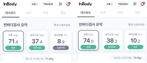두 달이 되는 2월 15일, 인바디 체크를 해봤습니다.