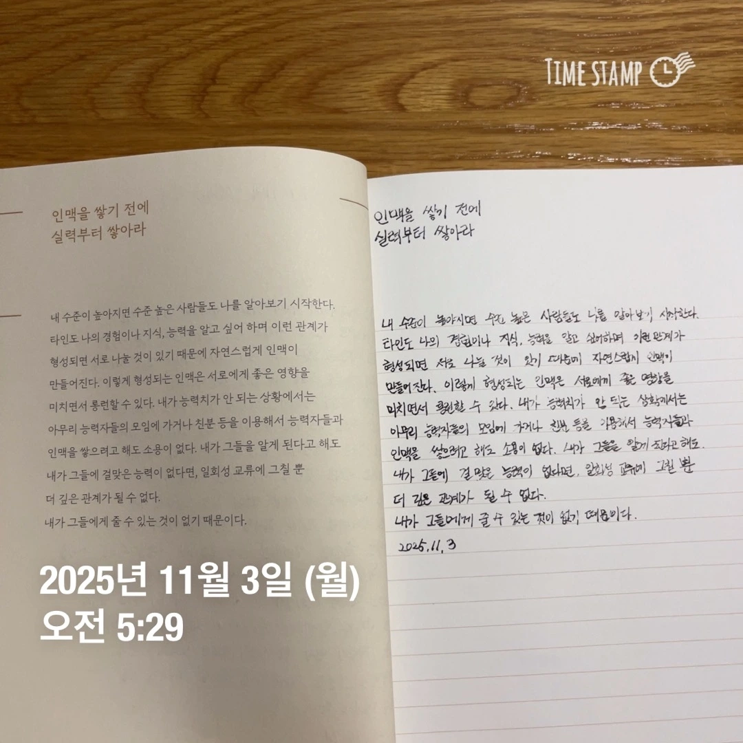 내가 그들을 알게 된다고 해도 내가 그들에 걸맞은 능력이 없다면, 일회성 교류에 그칠 뿐 더 깊은 관계가 될 수 없다.