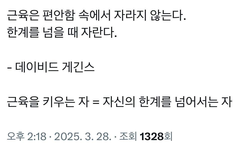 근육을 키우는 = 자신의 한계를 넘어서는 자