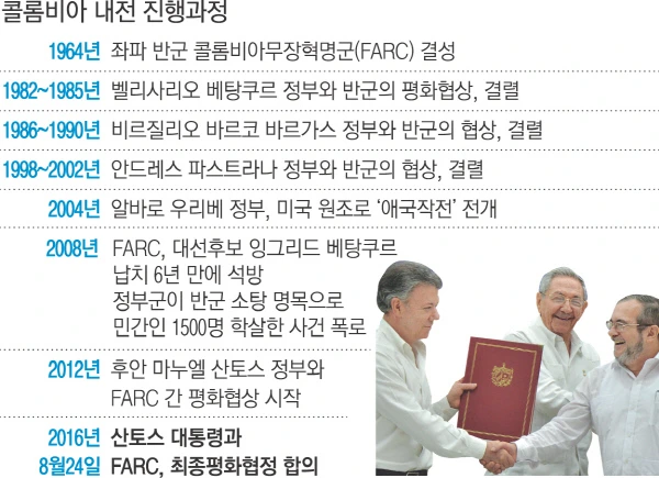 이 나라에 대한 공포와 불안의 인식은 견고하게 쌓아 올려진 피의 역사에 기초한다. 악명이 자자했던 마약 카르텔의 무자비하고 몰상식한 횡포만이 전부가 아니다. 콜롬비아는 자유주의와 보수주의의 격렬한 정치적 대립 속, 숱한 싸움과 상처를 누적해 가며 20세기를 맞이했다. 이데올로기, 독재와 부패, 내전과 혁명이라는 낯설지 않은 현대의 초석. 이들의 지독하고 고단한 현대사는 우리의 그것과 닮아 있었다.