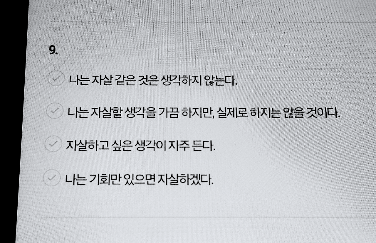 ‘나는 정신이 건강한 사람이에요.’라고 답을 요구하는 모범적인 답변이 있다는 것은 알지만