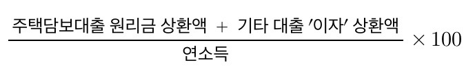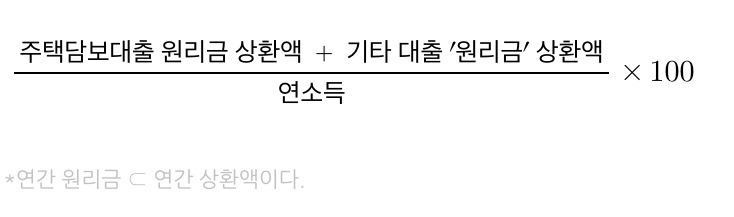 개인이 받은 모든 대출의 연간 원리금을 연소득으로 나눈 비율을 의미한다.