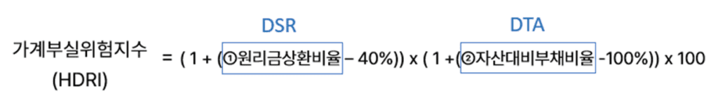 이는 원리금 상환비율(DSR)과 + 부채/자산비율(DTA)을 결합하여 산출한 지수이다.