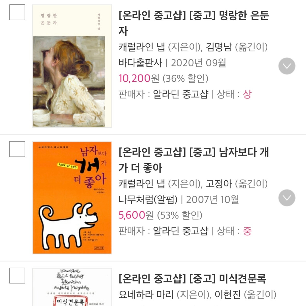 비어있는 선반을 뭘로 채울까 계속 고민했고 그곳에 꽂고 싶은 책들을 리스트업 했다. 그동안 궁금했던 책들을 장바구니에 넣었다가 역시 읽고 싶은 책과 소장하고 싶은 책은 다르지.. 라는 생각이 들어서 장바구니에서 슬며시 빼기를 반복. 책을 사고 싶은 욕구가 들 때마다 어차피 책장은 한정되어 있다는 말을 되뇌었고 고민 끝에 캐롤라인 냅과 요네하라 마리의 책들을 구입하였다.