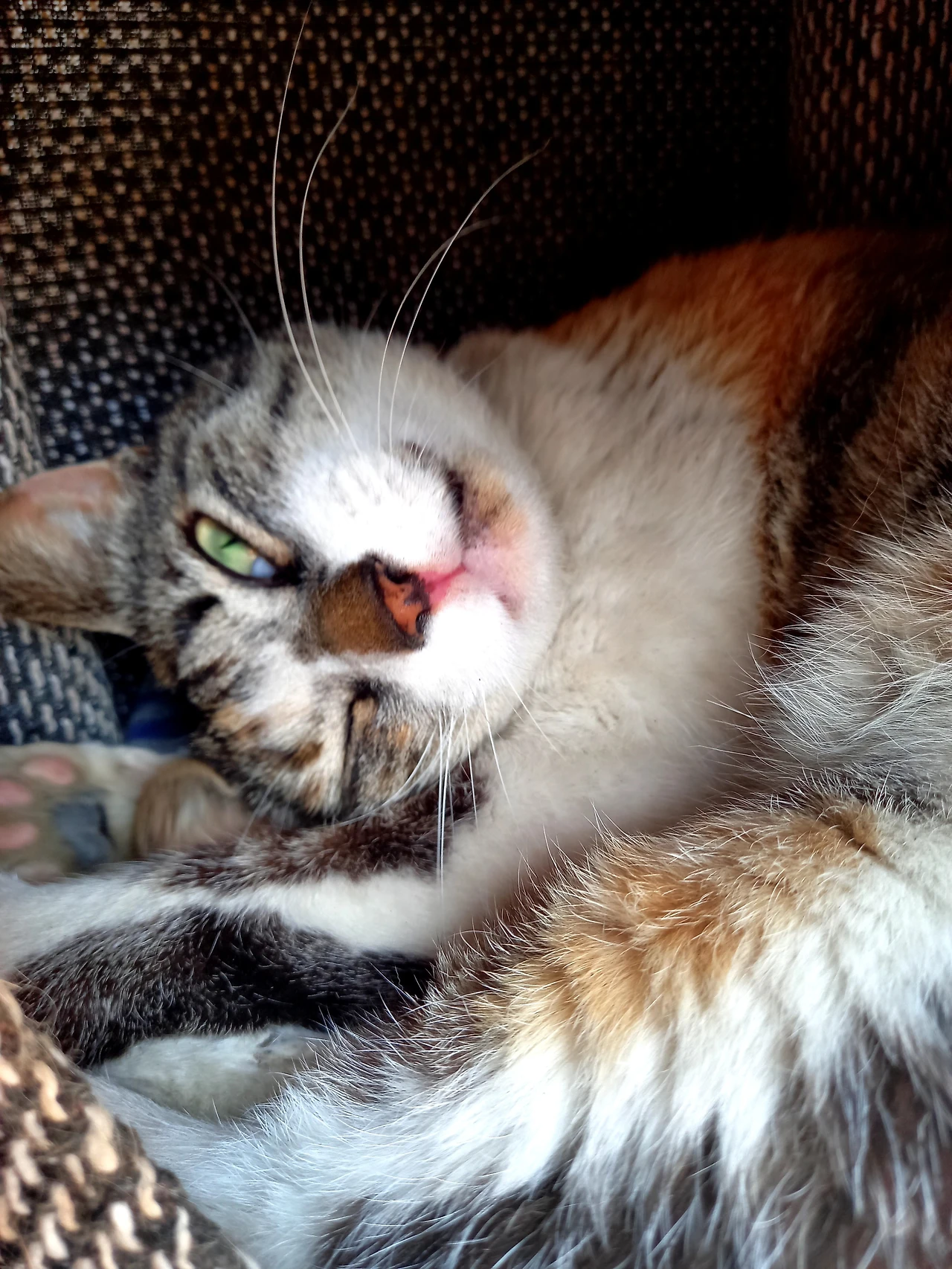 윤방울은 작년부터 엄마와 함께 돌보던 고양이인데 이곳으로 온 후, 윤방울은 엄마가 돌봐주고 계신다. 그런데 저 족구만 머리로 자기를 보살펴준다는 사실을 아는 것인지 여름이 되자 말로만 듣던 고양이의 보은이 시작되었다. 시작은 고추잠자리였는데 어느 날, 새벽부터 찾아와서 평소와는 다른 울음소리로 엄마를 부르길래 나가봤더니 생포해온 고추잠자리를 자랑스럽게 내놓았다고 한다. 엄마는 살아있는 잠자리(=고양이가 좋아하는 것)를 엄마에게 물고 왔다는 것에 크게 감동받으셔서 칭찬을 아끼지 않으셨다는데 방울이가 얼마나 훌륭한 고양이인지에 대해, 엄마에게 온 장문의 카톡을 보고 나는 웃음이 터져버렸고.
