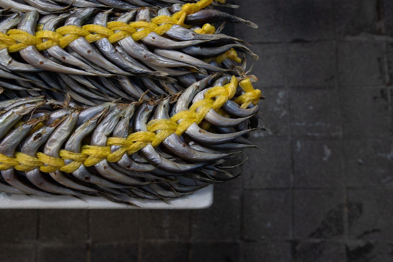 그리하여 가장 먼저 방문한 곳은 숙소에서 15분 거리에 있던 속초 재래시장. 항상 건너뛰던 만석 닭강정을 이번에는 기필코 먹어보겠다며 비장한 마음으로 재래시장을 찾았다. 유명한 가게들이 많아서인지 평일인데도 신기할 정도로 관광객들이 많았다. 곳곳에서 좋은 냄새와 비주얼을 뽐내는 음식에 정신이 팔려 하나씩 사다 보니 어느새 양손이 무거울 정도로 음식을 구입했고 그렇게 자연스레 저녁 메뉴가 정해졌다.