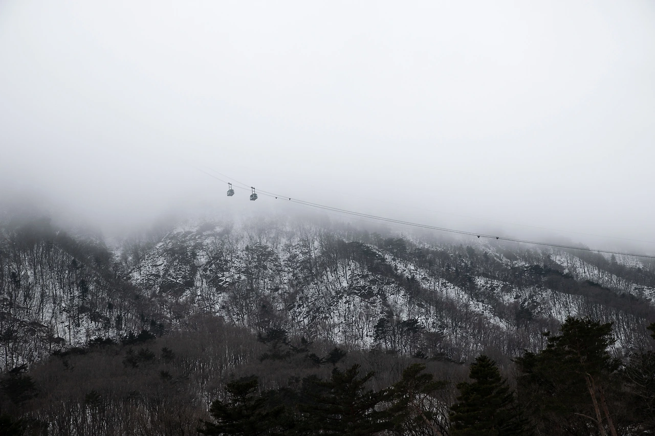 그리하여 오랜만에 온 설악산. 겨울형 인간이라 그런지 오랜만에 보는 눈 쌓인 풍경이 너무 아름다웠다. 설악산으로 목적지를 틀긴 했지만 그렇다고 본격 산행을 할 생각은 없었기에.. 안개가 많이 낀 날이었지만 케이블카를 타기로 했다. 그런데 위쪽에 도착하니 정말 한 치 앞이 보이지 않고 으스스한 기분마저 들어 케이블카를 타고 바로 하산했다.