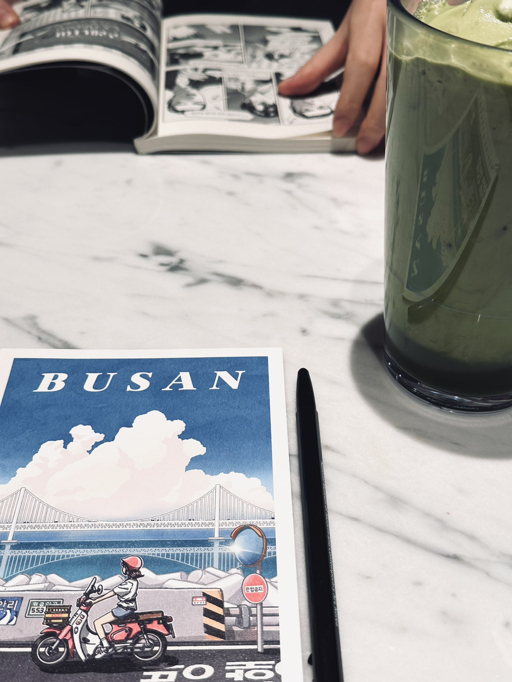 거의 휴가 때마다 찾아가서인지 이제는 왠지 방문하는 것만으로도 맴이 편해지는 GFC 폴바셋. 친구에게 쓰려고 부산에서 엽서를 사 왔는데 엽서를 쓸 시간이 없었고 결국 받는 사람을 앞에 두고 엽서 쓰게 됐다. 출국일이 코앞이라 아쉬움 가득한 인사를 하고 친구와 헤어졌다.