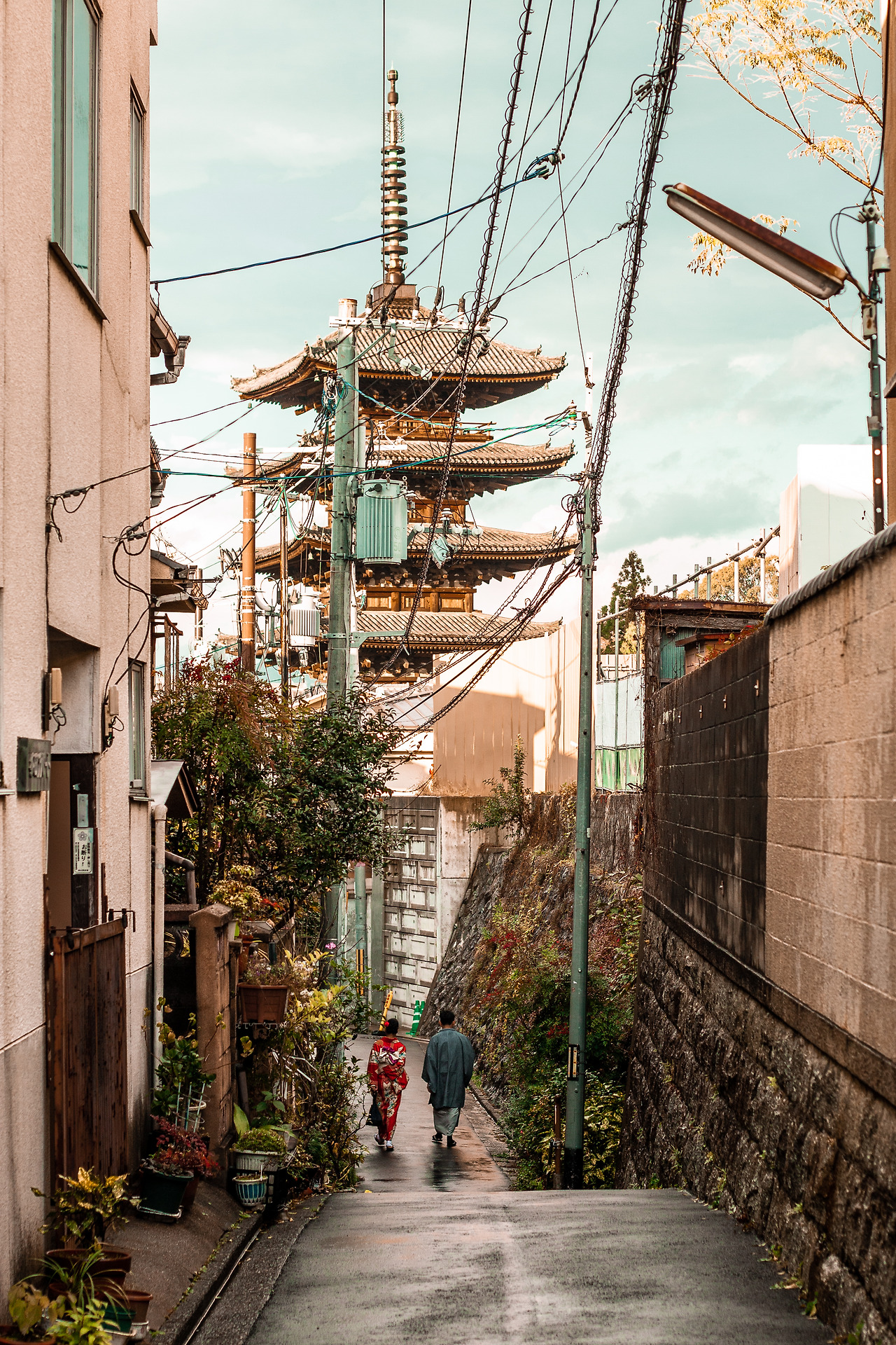 비록 청수사는 공사 중이었지만 매직 아워에 교토 시내의 전경을 볼 수 있었다. 니넨자까로 올라가 청수사를 보고 산넨자까로 내려오는 코스를 좋아한다. 내려오는 길에는 우동집 오멘에 들러 이른 저녁을 먹었다. 5시, 첫 손님이었다.