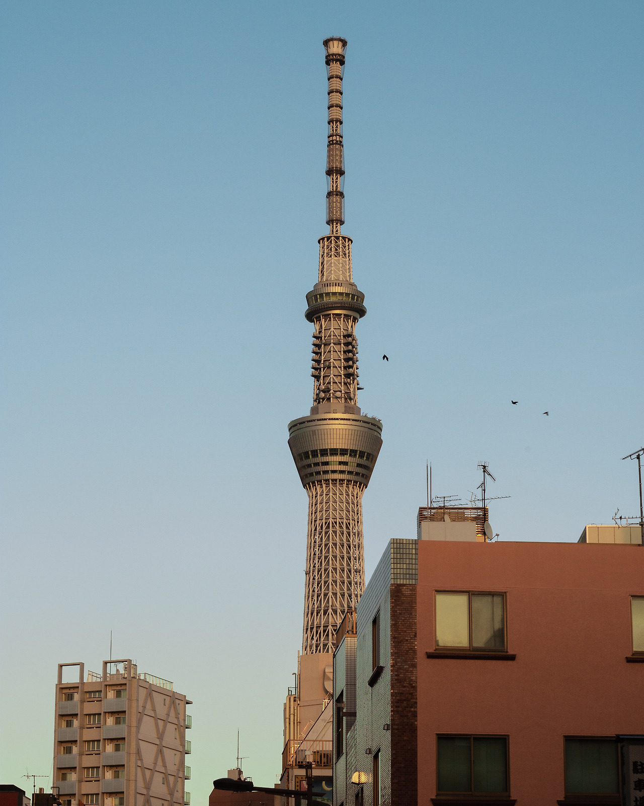 해질 무렵 아사쿠사를 찾았는데 길거리에 시간을 뚝뚝 흘리고 다니기라도 한 것처럼 돌아오는 길엔 주변으로 짙은 어둠이 가득했다. 빨간 제등과 함께 아사쿠사 방면에서 바라본 스카이 트리가 근사했다.