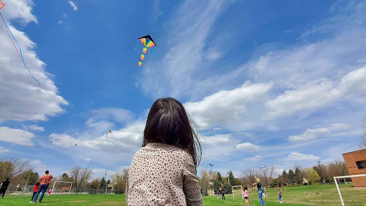 그날 오후엔 또 마침 첫째 학교에서 연날리기 행사가 있어서 둘째를 픽업하기 전 첫째 학교에도 잠깐 들렀다. 연을 날려보는 건 나로서도 오랜만이었고, 딸과 함께하는 건 처음이었다. 바람이 적당하게 불어 연이 무척 잘 날았다.