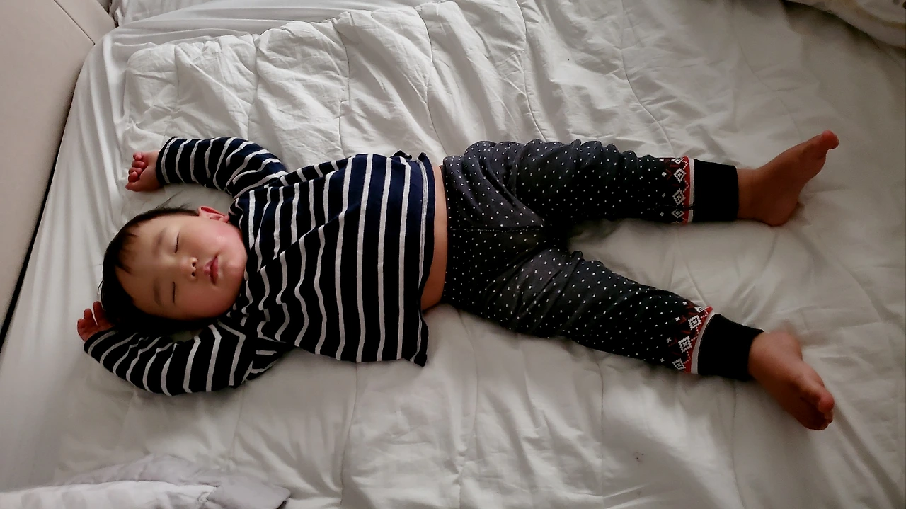 평소 낮잠 시간이 아닌데도 아파서 지쳐 잠든 모습이 안쓰럽지만, 조금만 더 자 주길 바라...