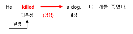[그가 죽였다.]라는 동작을 실행했다면 파리 한 마리라도 죽어야 말이 성립된다. kill이라는 동작은 반드시 어떤 대상에게 영향을 주는 타동적인 힘을 가지고 있다. 그러므로 [He killed.]처럼 [주어+동사]만으로는 의미가 성립되지 않는다. a fly이든, a dog가 되었든 반드시 영향을 받는 대상(O)이 있어야 하는 것이다.