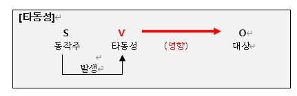 ☞ 타동(他動)이란 어떤 대상(O)을 움직이게 하는 힘을 의미한다.