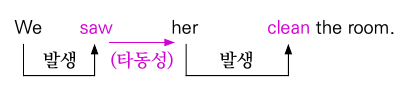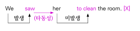 어떤 동작을 보았다고 하는 것은 곧 그 동작이 발생하였다는 것을 의미한다. 지각이란 직접적인 터치를 의미한다. 즉 내 시선이 직접 그 동작에 닿았다는 말이다. 발생하지도 않은 동작을 보았다고 할 수는 없지 않은가? 그러므로 지각동사가 오는 경우는 반드시 발생을 의미하는 원형부정사(V)가 와야 한다. 지각동사가 오는 경우 미발생을 의미하는 to-V가 올 수 없다는 것은 삼척동자도 이해할 수 있는 간단한 원리이다. 사역동사도 동일한 이치이다. 자세한 것은 별도로 설명한다.