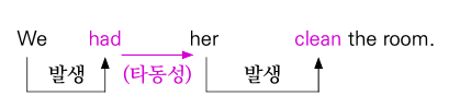 우리는 시켰다. [그녀는 그 방을 청소를 했다.]