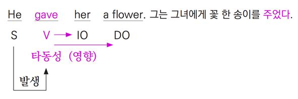 ►그는 그녀에게 꽃 한 송이를 주었다. (그녀는 그 꽃을 받았다.)