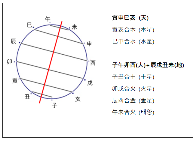 寅과 亥가 만나 합을 이루면 木氣가 생겨나므로 용출, 시작, 전진, 창조적 활동 등 봄에 만물이 생장하듯 새로운 일을 시작하는 기운이 된다.