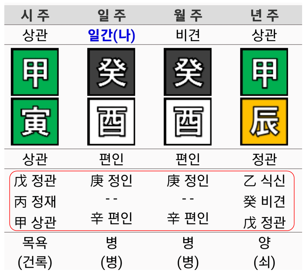 그러므로 지장간은 일간 명주가 품고 있는 잠재력, 또는 가능태라고 할 수 있습니다.