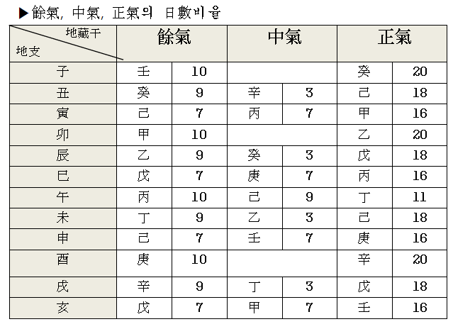 정기는 당해 계절의 당령이 되며, 지지를 규정하는 기운입니다.