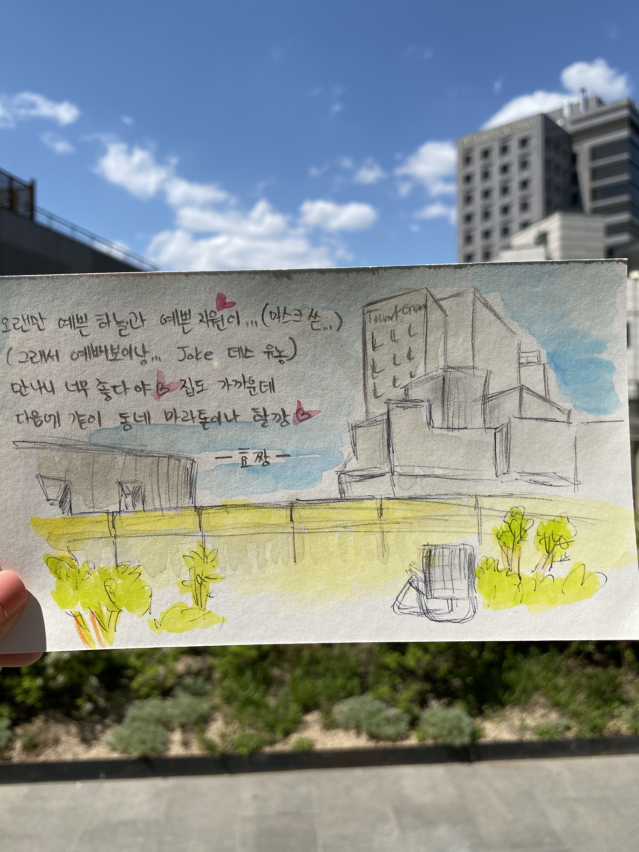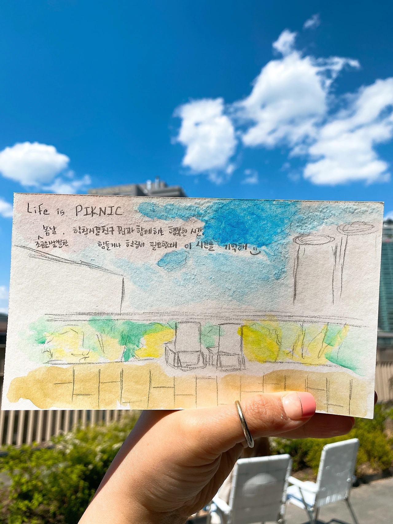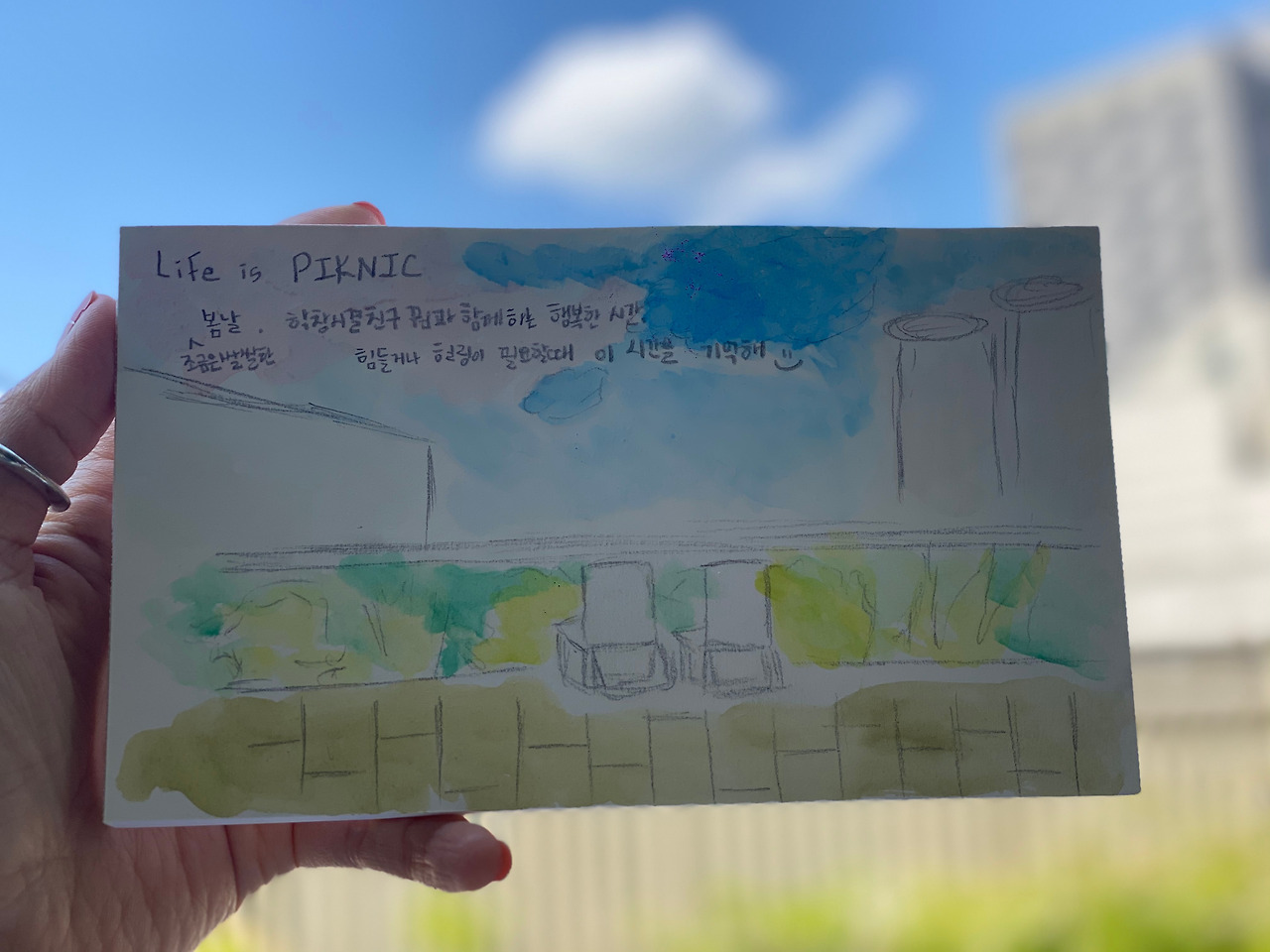 2020년 5월 친구와 그린 수채화 사진을 첨부>