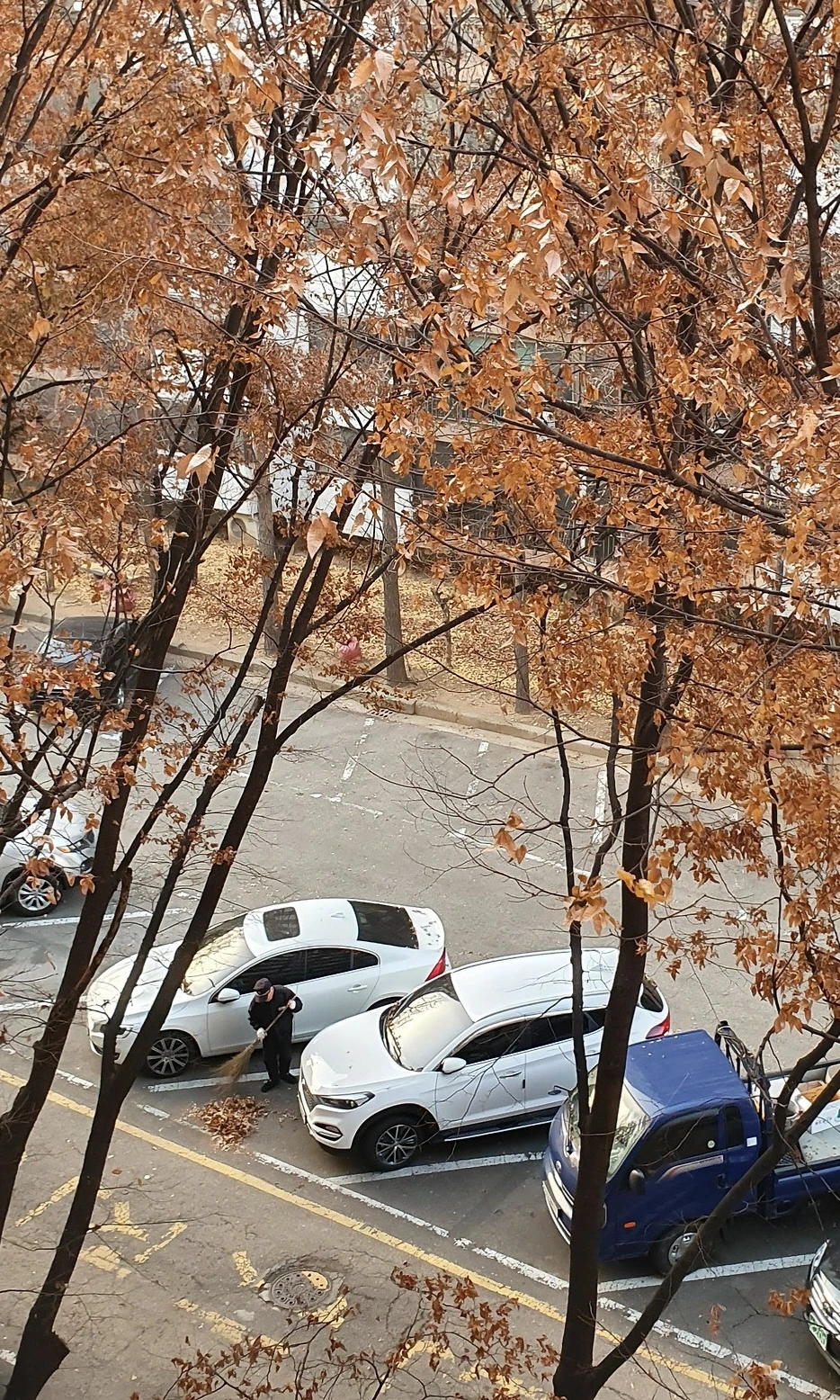 한참을 그 복도에 서 있었다. 9살 때 틈 사이에 한쪽 발을 끼우고 까치발을 해야 겨우 턱끝이 닿았던 난간은 이제 가슴께에 걸렸다. 어쩌다 열쇠를 깜빡한 날이면 나는 그 난간에 매달려 주차장을 내려다보며 어머니를 하염없이 기다렸다. 가끔은 들어와서 기다리라며 옆집 문이 열리기도 했지만, 나는 복도 끝에서 저층 단지에 내려앉는 노을을 보는 걸 좋아했다. 그 시절처럼 경비 아저씨가 주차장에서 여전히 낙엽을 쓰는 소리가 들려왔다.