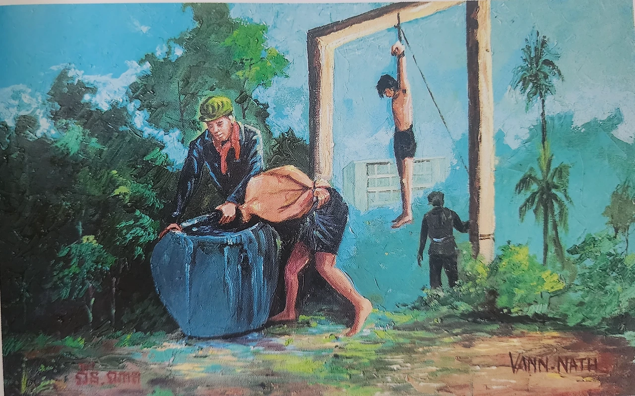 뚜엉슬렝에서 벌어진 고문의 한 장면. 반나쓰 이곳에서 본 기억들을 그림으로 남겼다. 희생된 모든 사람들에게 빚을 갚는 마음으로 그렸다. 그림들이 잔인하기 때문에 다 올리지 못했다