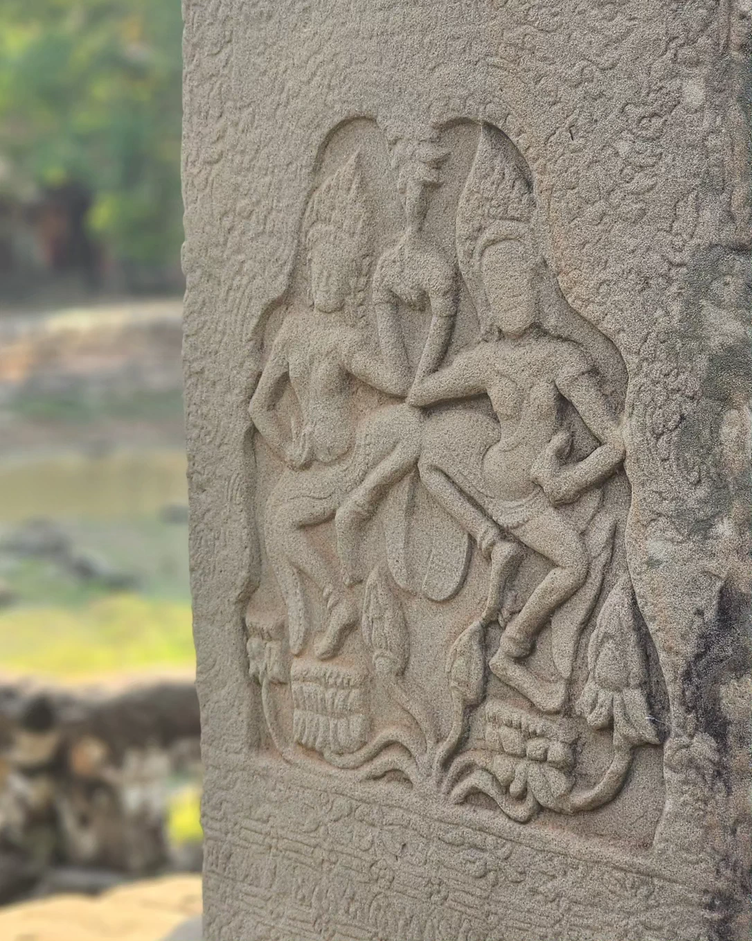 춤추는 압사라의 손은 야자수의 잎새를 닮았다. 겉은 단단하고 속에는 물이 꽉 찬, 생명수 같은 코코넛과 야자수의 잎새는 묘하게 여성적이고 섬세하며 느리게 춤추는 압사라를 닮았다. 어디서나 만나는 압사라 여성 조각들은 우아함이 깃들고도 생생한 생명력을 느낄 수 있는 것이었다. 순수해 보이지만 약간 몸을 비틀고 있는 당당함. 길거리에서 코코넛의 한 부분을 깨서 빨대로 그 안에 있는 과즙을 들이킬 때마다 진지하게 압사라 여성조각들의 풍만한 가슴이 떠올랐다. 그 직관적인 인식은 너무나 당연한 것이었고 건강한 생명력이라 느껴졌다. 노골적이면서도 당연한 것을 주장하는 석상들이 가장 여성스러운 것들을 당당하고 매력적으로 표현하고 있었다. 우리 시대는 여성이 여성적인 것을 오해하고 있고 여성적인 것을 감추려 한다고 느낄 때가 많다. 압사라의 석상들은 매력 있고 당당한 여성의 상징처럼 보였다. 그것이 가장 자신다운 것. 그것이 아름다운 것이다.