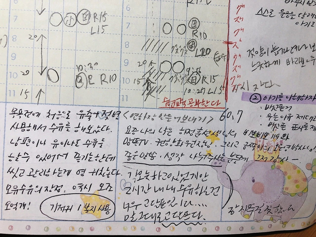 첫 아이를 완모(완전 모유 수유)했다는 자부심을 가지고 있었던 나는 모유수유에 폭발적인 자신감을 가지고 수유실로 향했으나 반나절 만에 좌절 모드가 되었다. 축 쳐진 탄력 없는 가슴을 주물러 가며 뚫어지게 바라보고 있는 것도 고역인 데다 열심히 입질을 하다 제 풀에 지쳐 빠는 것을 포기해버린 아이에게 미안한 마음을 떨칠 수가 없었다. 결국 분유 보충을 하고 타협점을 찾아가야 하나... 아니야 그래도 해야지 사이를 시계추 오가듯 하루에도 수십 번씩 고민하다 터덜터덜 수유실을 나오는 내 모습이 내가 봐도 참 안돼 보였다.