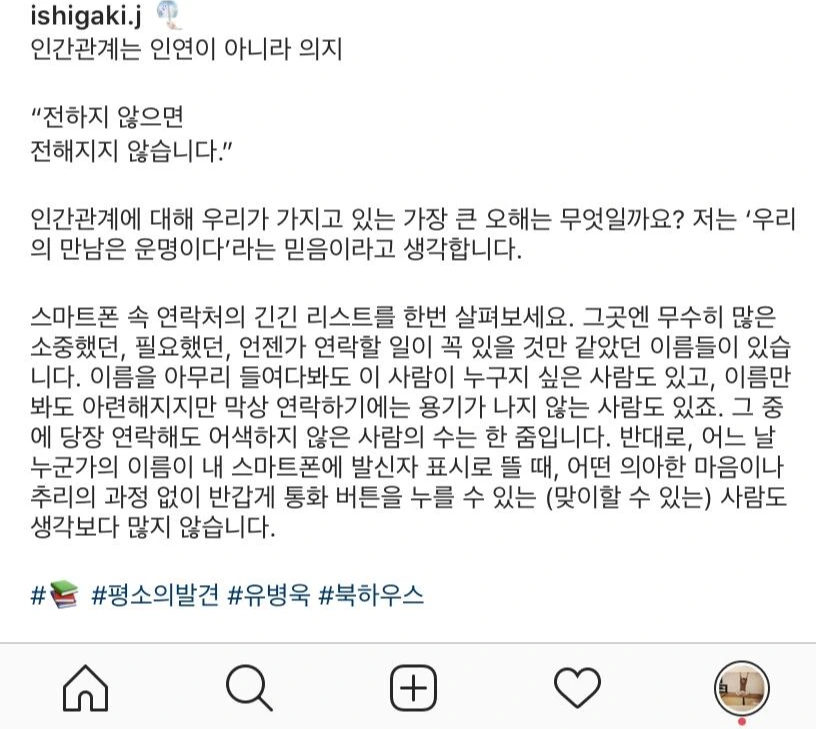 지금까지 책을 먼저 읽고 작가를 알아가는 경우는 있어도, 작가를 먼저 알고 책을 읽은 경우는 처음 있는 일이었다. 그런데 (비록 온라인 상이긴 하지만) 같은 책을 읽고, 독서노트로 생각을 공유하고, 좀 전까지 카톡으로 대화를 주고받는 거리에 있던 사람의 책이 나왔다니! 연예인 친구를 두면 이런 느낌일까?