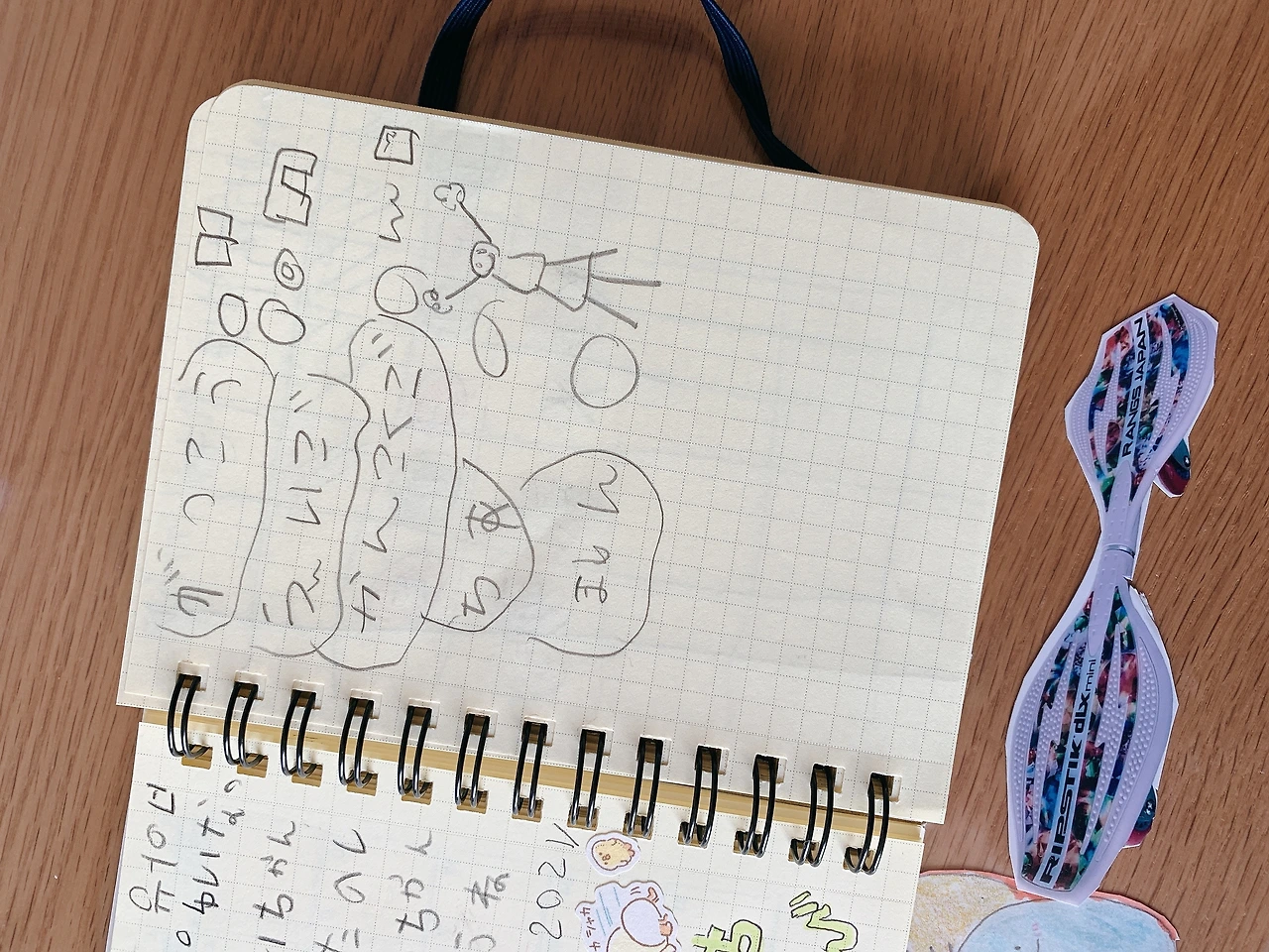 “숙제~에, 영어어~, 한. 구. 고(한국어)랑 치어 연습!!” 하며 수첩에 하나하나 적어가는 작은 손. 두 팔 벌려 신나 하는 그림까지 그려 넣는 걸 보니 ‘해야 한다’는 부담감보다 ‘하고 싶다’는 기대가 더 큰 것 같아 다행이다. “아, 책도 읽어야지!”