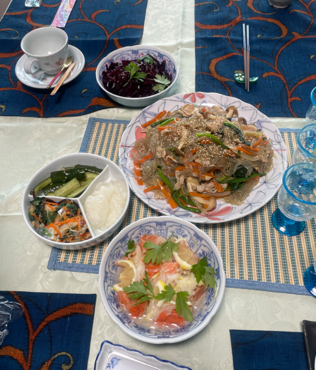 선생님 부부와 근처에 혼자 살고 계신 선생님의 언니를 모시고 선생님 집에서 잡채를 만들어 먹었다.