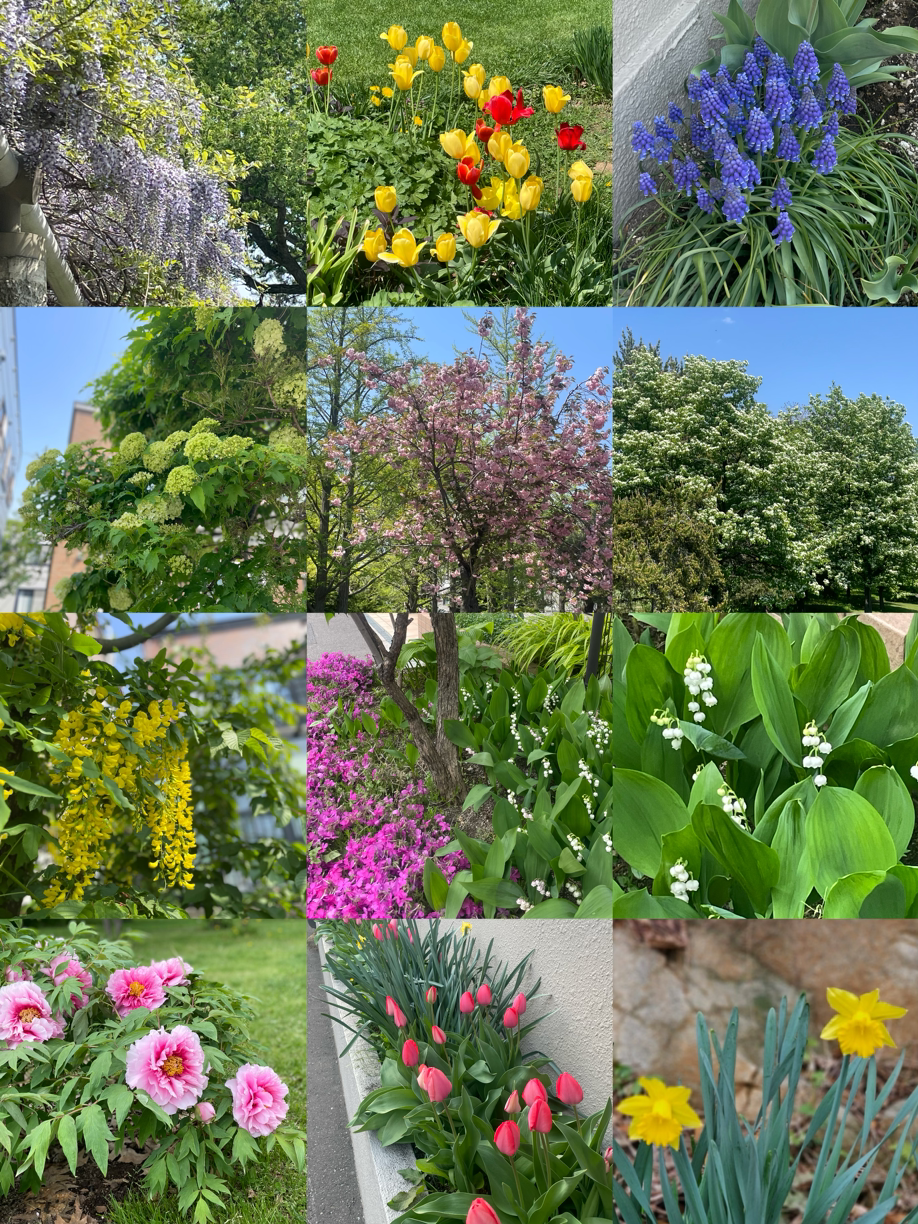 여기저기 작은 화단이며 가로수 아래에 튤립, 수선화, 무스카리, 크로커스가 피었고, 꽃잔디가 바닥을 진분홍 카펫으로 깔면 그 위에 은방울 꽃이 피어났다.