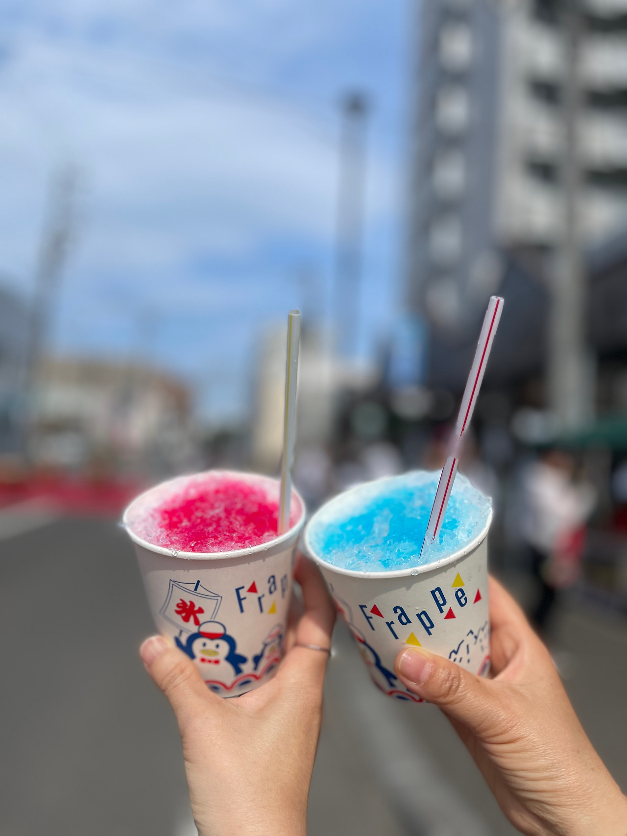 순돌엄마와 かき氷(카키고오리, 빙수) 하나 사들고 구경했다.