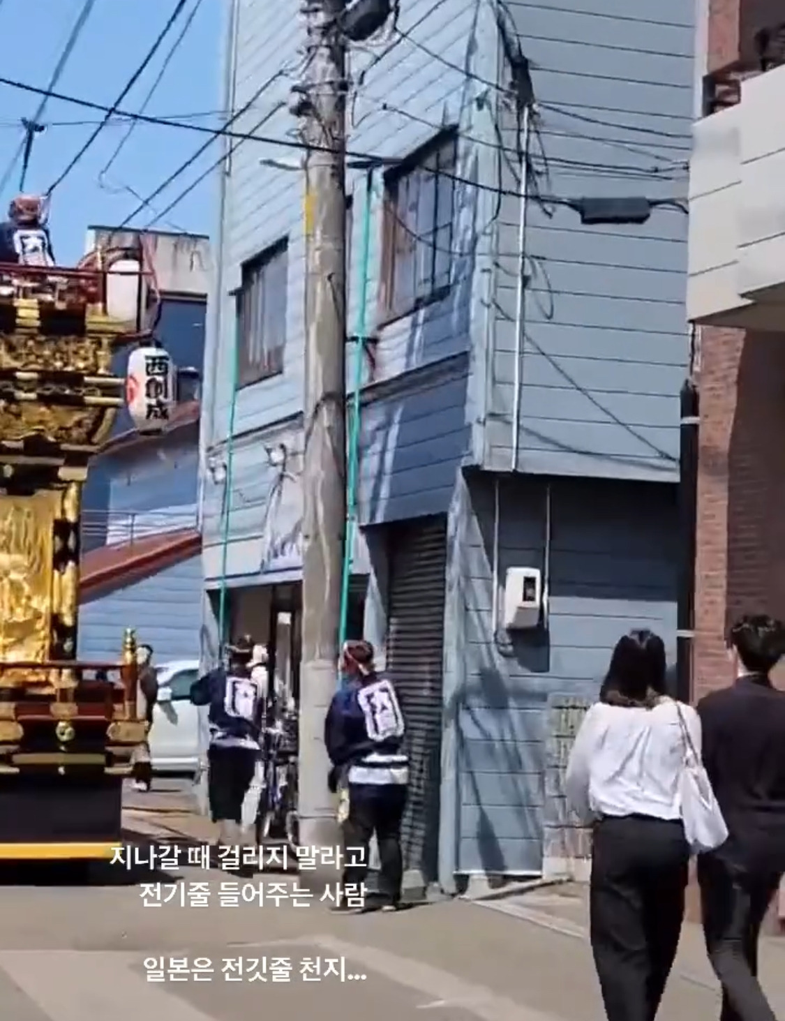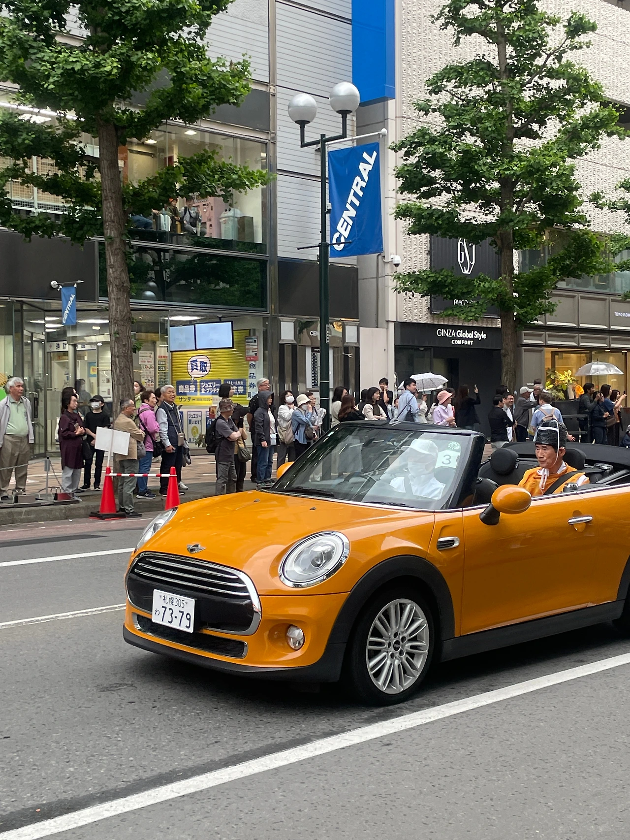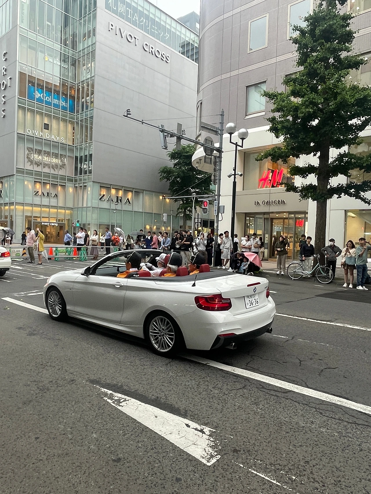 동네 작은 오미코시 행렬에서는 작대기를 들고 전깃줄을 들어 올리며 다니더니 메인 행렬에서는 전통복장을 입고 외제차 뚜껑을 열고 다니다니…