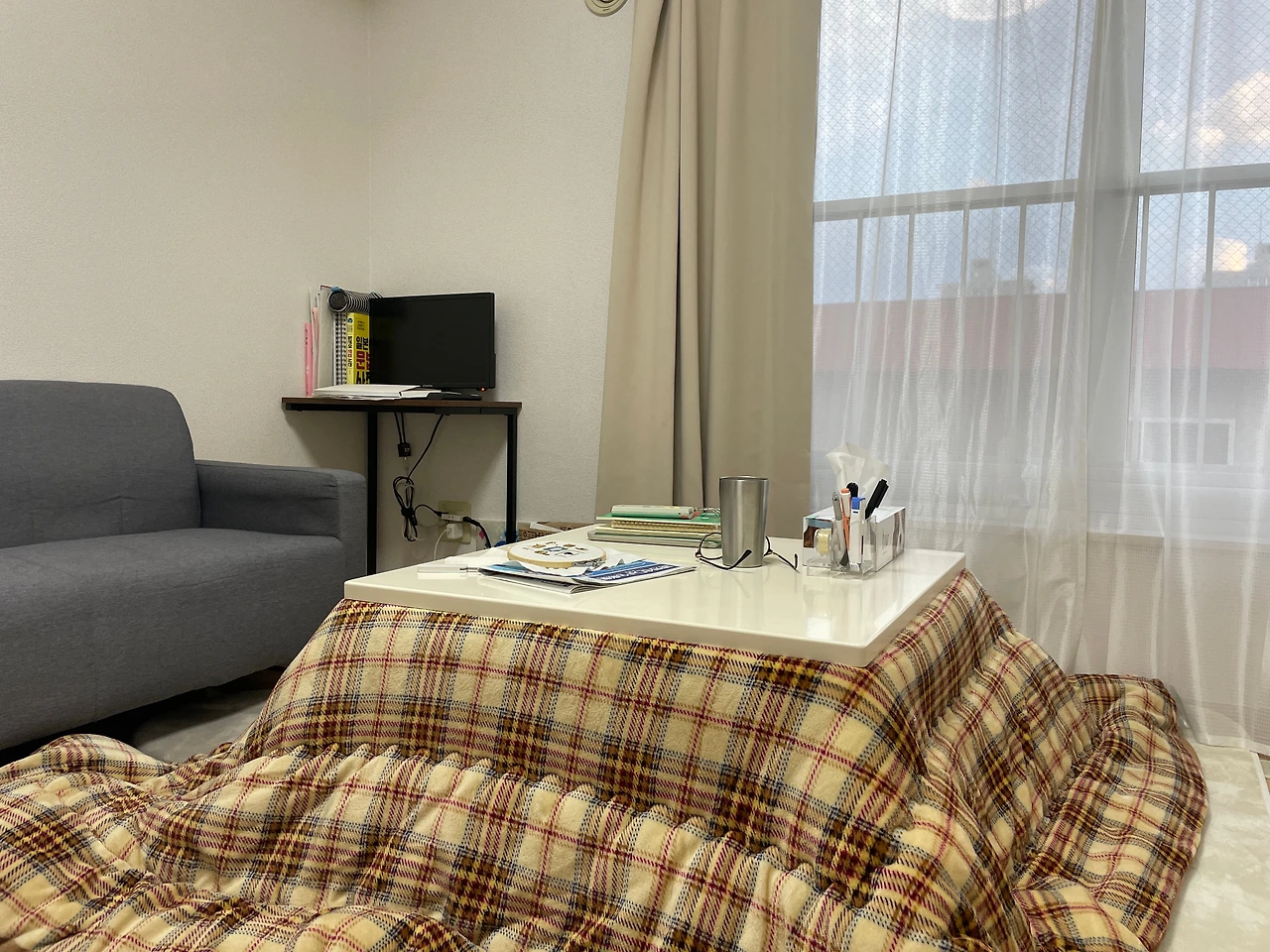 추운 겨울, 짱구네처럼 코타츠 이불속에서 따땃하게 귤 까먹는 일본 갬성을 느끼고 싶다는 딸들의 바람을 들어주고 싶어서 오자마자 중고가게에서 산 니토리 코타츠.