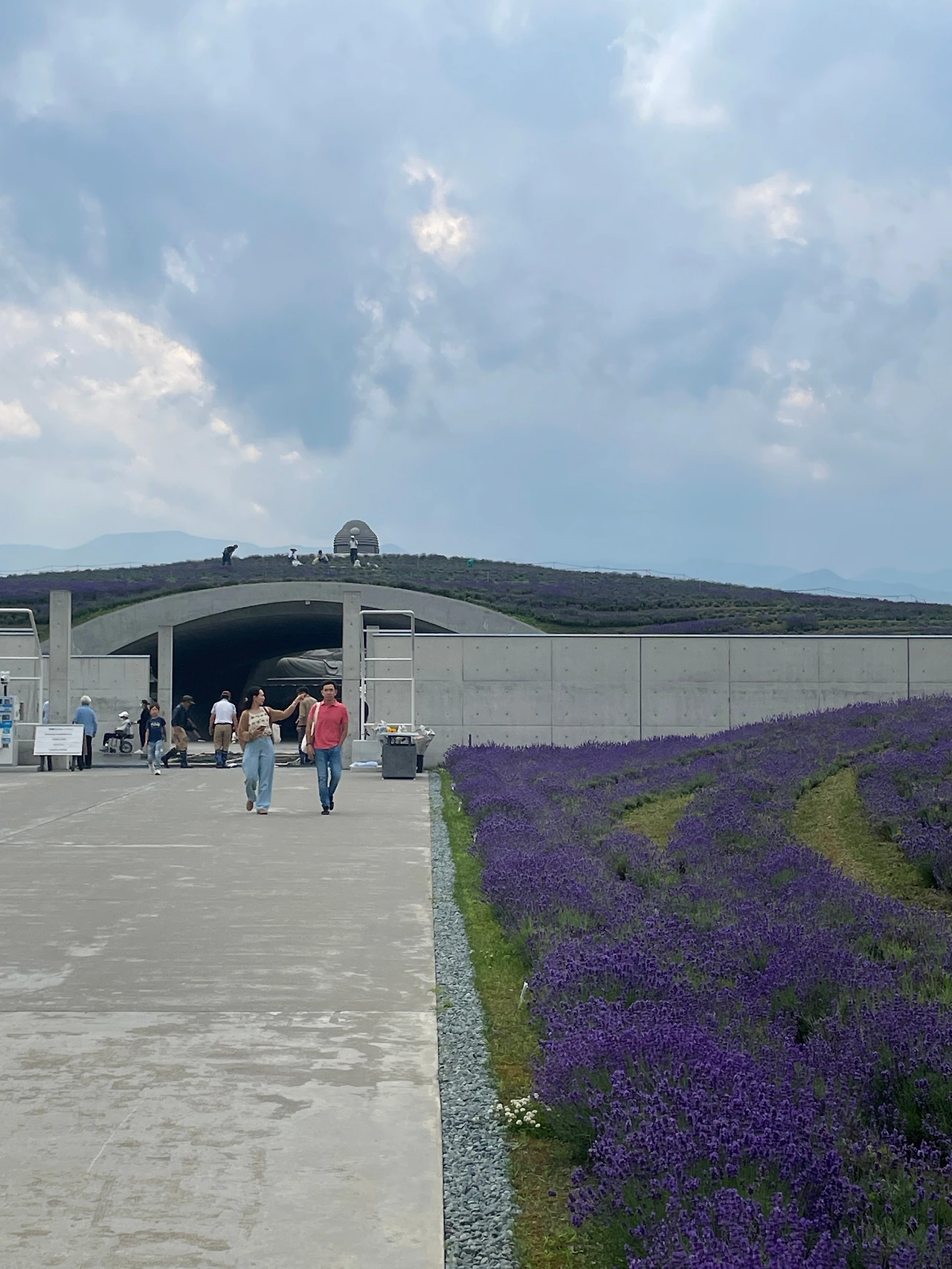 삿포로 돔이 물고기 비늘처럼 반짝이는 넓은 초원에서 양들이 풀을 뜯고 있었다. 라벤더 밭에서는 무료로 1인당 50줄기씩 잘라갈 수 있도록 가위를 빌려주어 작은 꽃다발도 만들었다.