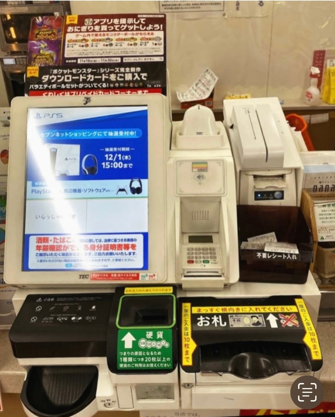 우리 편의점은 모니터에 뜬 금액을 확인하고 손님이 결제방법을 선택해서 대금을 지불해야 한다.