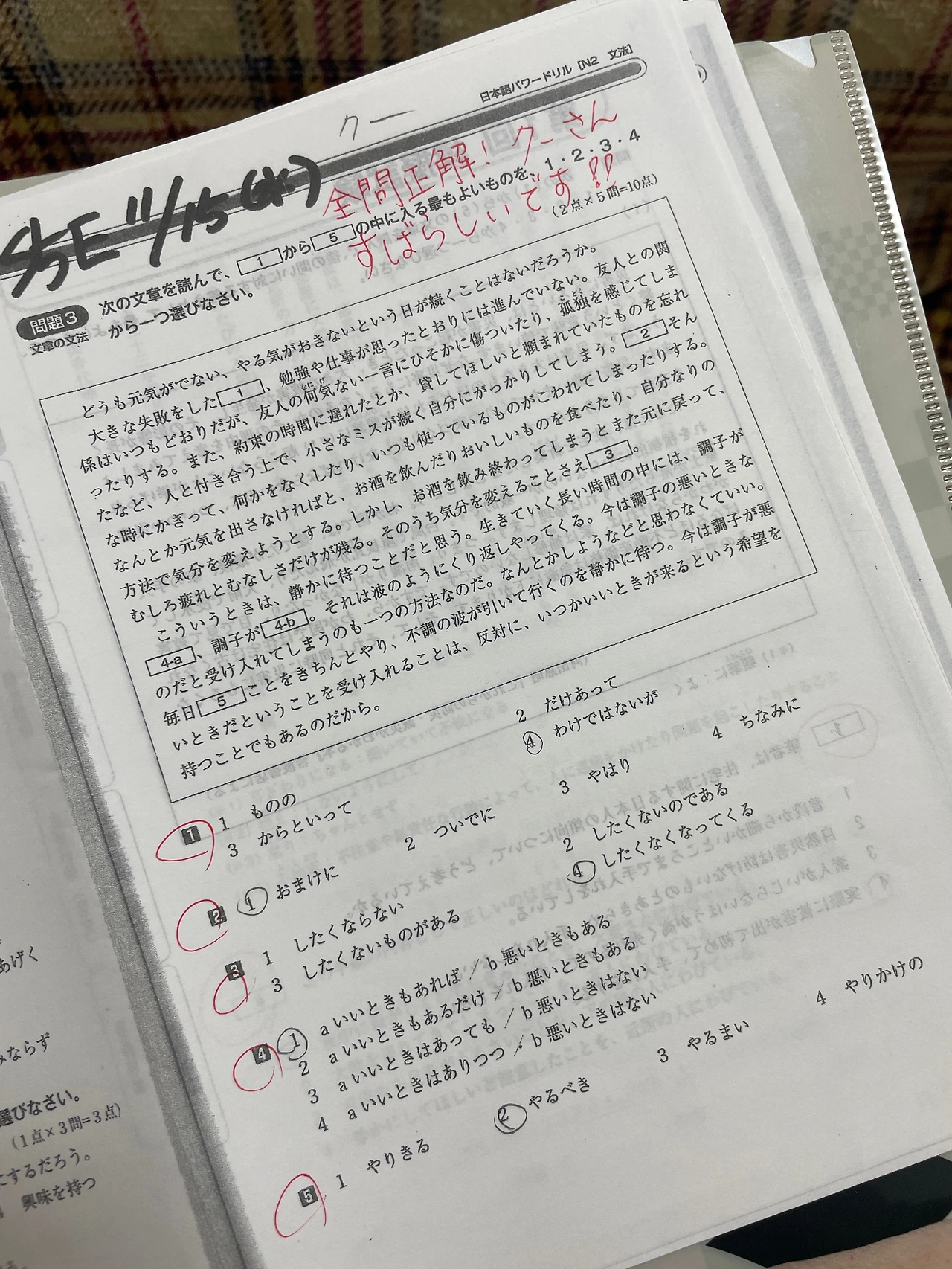 N3 반에 있다가 N2반으로 중간에 옮겨지는 바람에 수업 과정 중 대부분의 문법을 배우지 못했다.