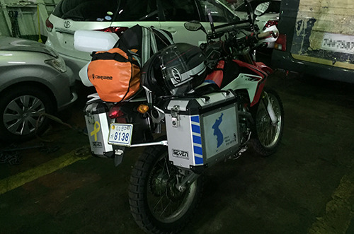 여객터미널 근처에 있는 편의점 앞 공터에서 배에 가지고 갈 세면도구와 갈아입을 편한 옷 등을 꺼내며 짐을 정리하고 있는데, 멀리서 나처럼 짐을 잔뜩 실은 바이크가 다가온다. 나와 같은 배로 블라디보스톡으로 가게 될 친구와의 첫 만남이다.