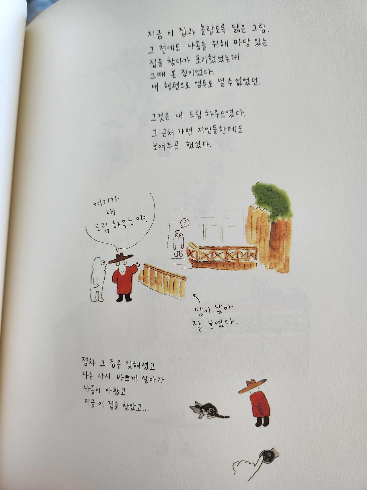 지금 이 집과 놀랍도록 닮은 그림. 그전에도 나옹을 위해 마당 있는 집을 찾다가 포기했었는데 그때 본 집이었다. 내 형편으로 엄두도 낼 수 없었던. 그것은 내 드림하우스였다. 그 근처 가면 지인들한테도 보여주곤 했었다. <여기가 내 드림하우스야> 점차 그 집은 잊혔고 나는 다시 바쁘게 살다가 지금 이 집을 찾았고...