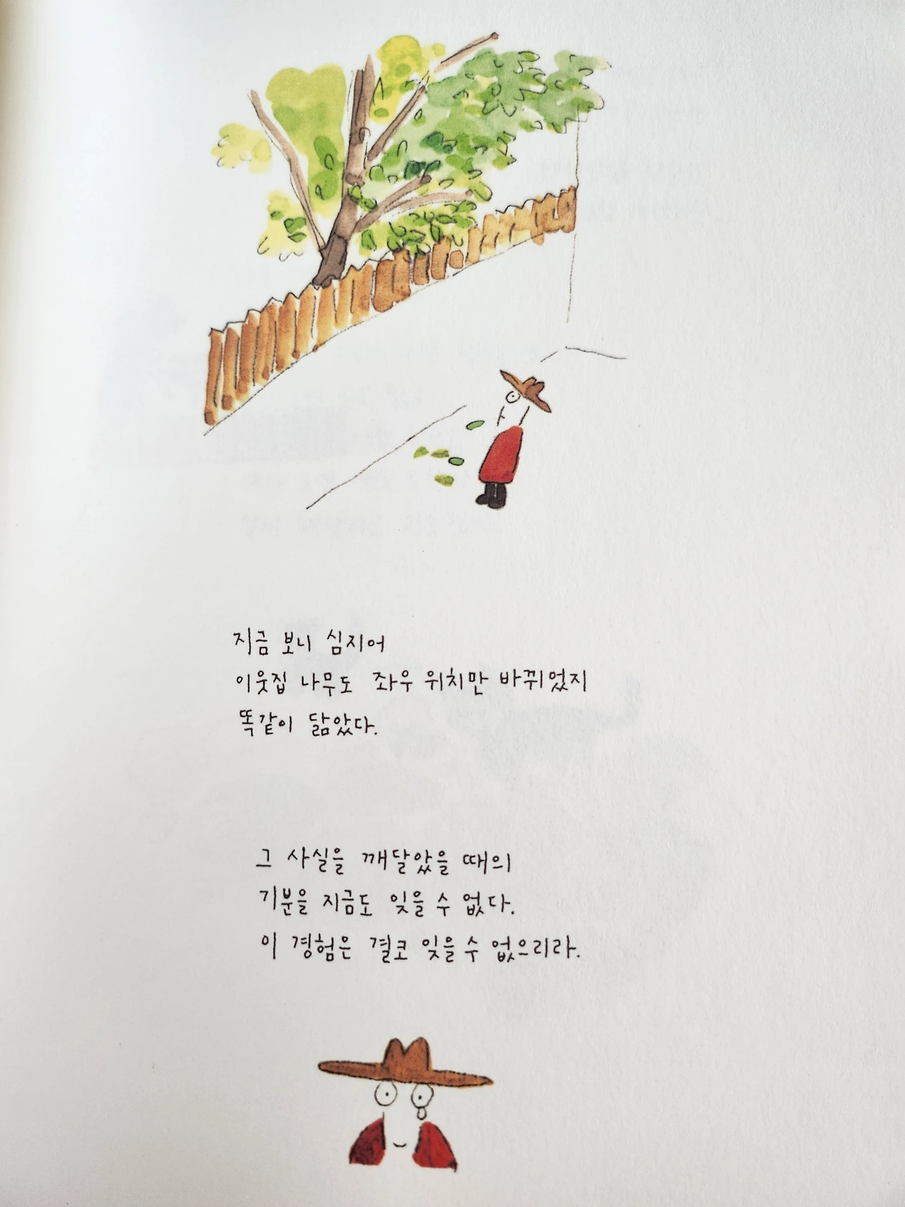 가장 놀라운 부분은 이 두 집은 처음에는 닮았다는 느낌이 없었고. 내가 필요에 의해 수리를 하다 보니 꼭 닮은 모습이 되었다는 것이었다. 지금 보니 심지어 이웃집 나무도 좌우 위치만 바뀌었지 똑같이 닮았다. 그 사실을 깨달았을 때의 기분을 지금도 잊을 수 없다. 이 경험을 결코 잊을 수 없으리라.