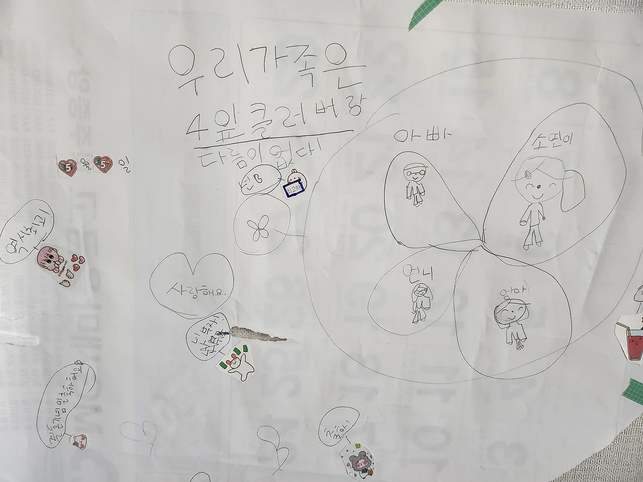 나 : 엄마는 네 잎클로버 행운도 좋고. 세 잎클로버 행복도 좋은 것 같아.