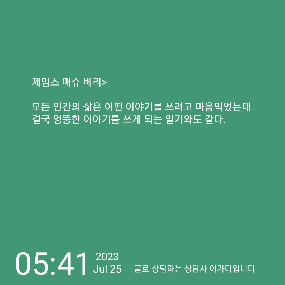 제임스 매슈 베리> 모든 인간의 삶은 어떤 이야기를 쓰려고 마음먹었는데 결국 엉뚱한 이야기를 쓰게 되는 일기와도 같다.