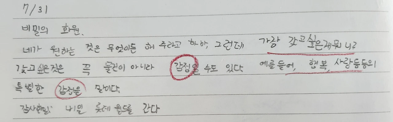 저는요. 이유가 있을 거라고 생각해요. 신이 인간에게만 감정을 느끼게 한 것에는 다 이유가 있을 거라고 믿어요.