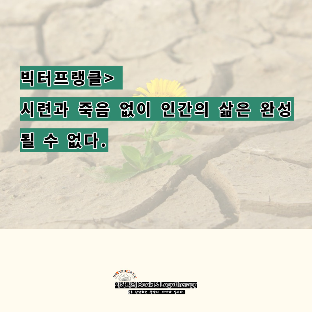 빅터프랭클> 시련과 죽음 없이 인간의 삶은 완성될 수 없다. 사람은 자기 일을 할 수 있는 기회나 혹은 자기 인생을 즐길 수 있는 기회를 박탈당하는 상황에 잘 수 있다. 이것이 시련의 불가피성이다. 이런 시련의 도전을 용감하게 받아들이면 삶은 마지막 순간까지 의미를 갖게 되는 것이며 그 의미는 글자 그대로 죽을 때까지 보존된다. 다시 말해 삶의 의미는 절대적인 것이다. 왜냐하면 그것은 피할 수 없는 시련의 잠재적인 의미까지 포함하고 있기 때문이다.